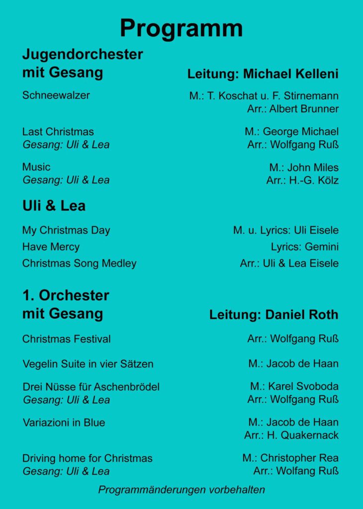Um Euch auf das Konzert einzustimmen haben wir hier das Programm . Durchs Programm führen wird uns in diesem Jahr unsere Stephanie.
